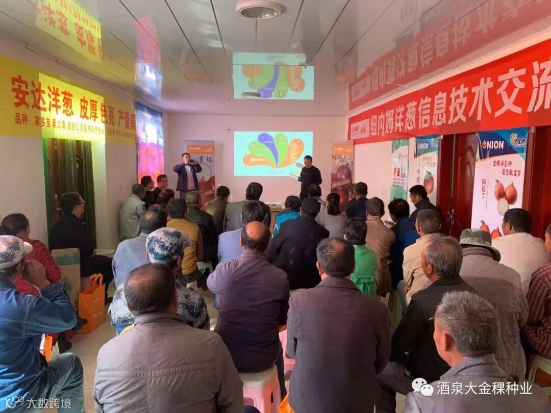 2019年10月29日,纽内姆团队带领大金稞种业、安达种业、鸿丰种业在酒泉肃州区下河清乡召开了“洋葱信息技术交流会”,深入一线,将最新市场信息,最专业的品种讲解、最实用的植保技术,带给了下河清的广大种植户。