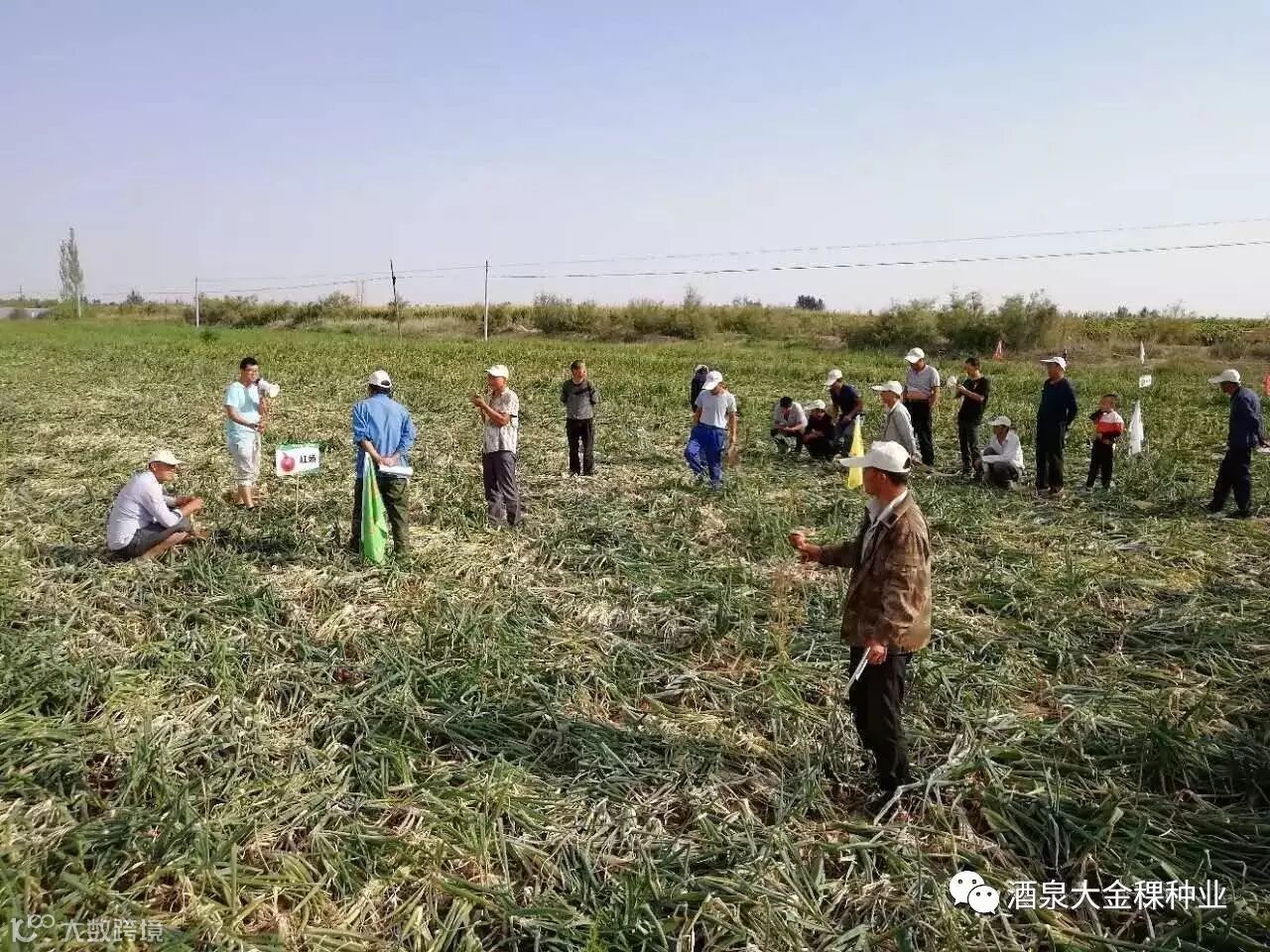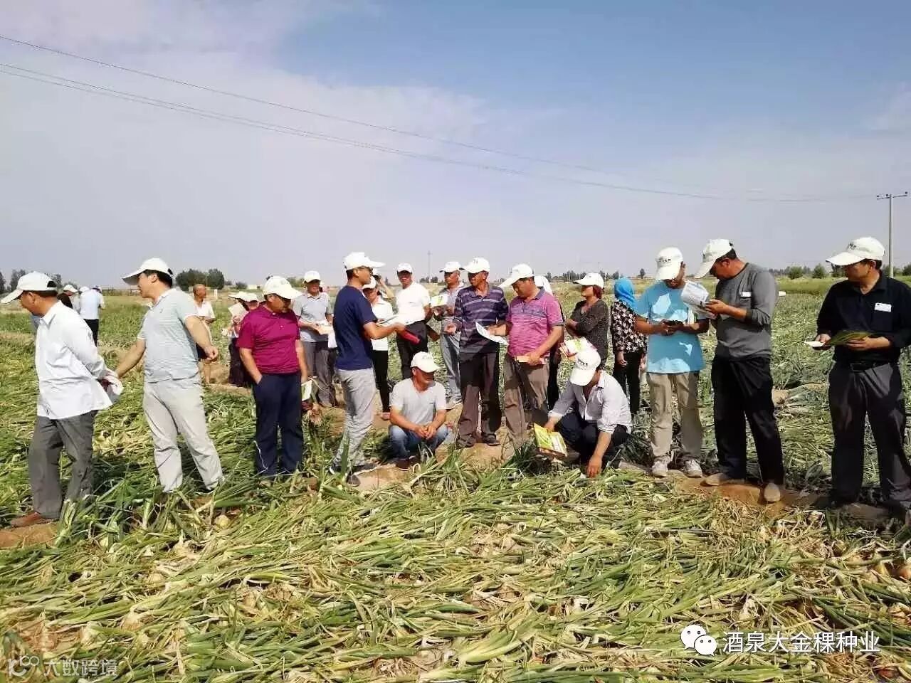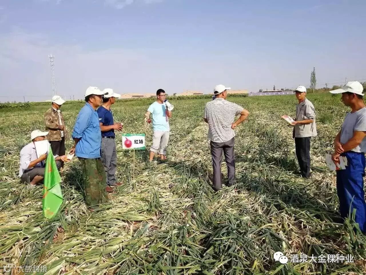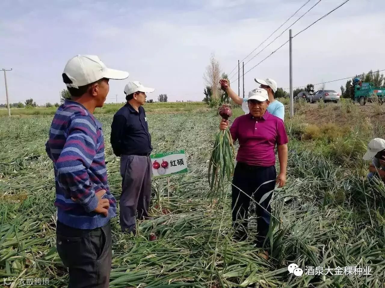 2017年8月16日,早上9点,酒泉市大金稞种业在永昌县朱王堡镇北大滩祝兆荣的地块举办了洋葱品种观摩会,参会人数达70多人,武威黄羊河的领导莅临现场,并查看了观摩田,现场气氛一度达到高潮。这次观摩会的品种主要有:金宝,罗塔,金稞6号,红硕,红娇,红剑,新红奇2号。尤其红硕、新红奇2号、罗塔表现优秀,得到参会人员的一致好评。