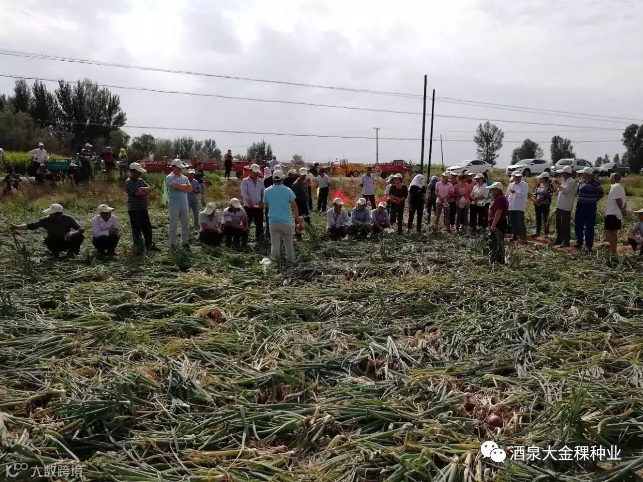 2017年8月17日,下午5点,刚下完点滴小雨,天气还有些微凉,但是这一切阻挡不住民勤县昌宁镇梧桐村、大海子,昌盛村,北井子村等60多位种植户,参加酒泉市大金稞种业的洋葱品种观摩会。本次观摩会的参展品种主要有:金宝,罗塔,金稞6号,红硕,红娇,红剑。尤其红硕、金稞6号,罗塔、金宝表现优秀,得到参会人员一一称赞。