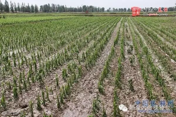 6月9日下午,高台县宣化镇遭受强对流天气引发的冰雹袭击,冰雹最大直径1.5厘米,致使7个村的各类农作物不同程度受损。在灾情最严重的东庄、贞号、利号、利丰、站北等村,成片的商品制种玉米、洋葱、夏菜、番茄被无情地冰雹打得支离破碎,即将成熟的"东庄"西甜瓜和正值授粉关键期的制种西瓜一片狼藉,受损严重。酒泉大金稞种业区域服务人员第一时间赶至灾区为受灾农户提供技术服务。