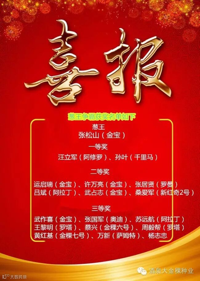 酒泉大金稞种业为恭祝15年甘肃所有洋葱种植户,取得大丰收,在8月29日特举办“葱王争霸”大赛,也祝贺此次葱王大赛取得圆满成功。
