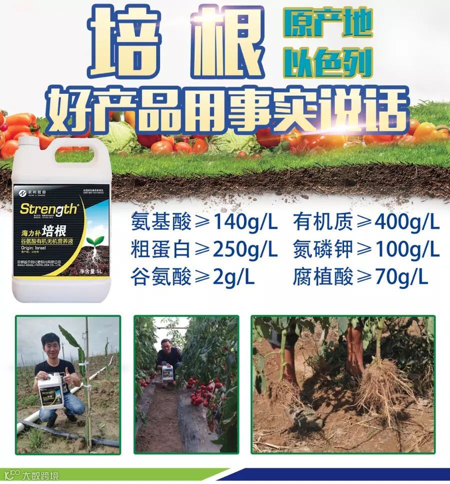 海利补培根是由以色列马克海化矿业有限公司科研人员对海洋提取物经过了多年研究依据海洋生物学,土壤环境学,植物逆境生理学和生态学原理,利用土壤微生物活化技术与海洋提取物结合的高科技产品,含有超过80种矿物质和来自深海的活性有机物质。包含了维持植物根系和微生物所需的所有营养和矿物质。通过刺激植物根系和土壤中微生物(真菌和土壤中的藻类)生长,来减少土壤中不良环境对作物的伤害,因此作物通过根力壮可减少30%-60%的农药与化肥的使用量。