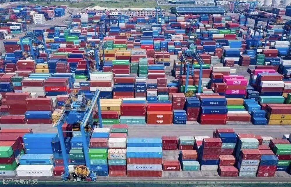 集装箱折射着阳光的斑斓;