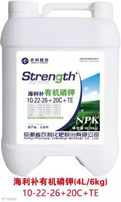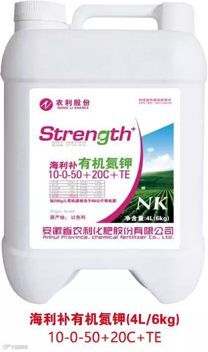 海利补有机氮钾、磷钾是以色列马克海化矿业有限公司科研人员,经过多年研究后,充分运用最新植物学矿质营养理论,依据养分归还规律、报酬递减规律,针对目前中国土壤板结,盐分高,根系活力低,肥料利用率低,植物抗逆能力弱等问题,运用了有机小分子螯合技术、聚磷酸钾合成技术和植物保护酶诱导技术,根据作物需肥规律,特别添加离子保持剂,抗逆诱导剂,有机碳,从全新角度开发出纯天然生物、矿物相结合的高科技有机无机大量元素液体水溶肥。