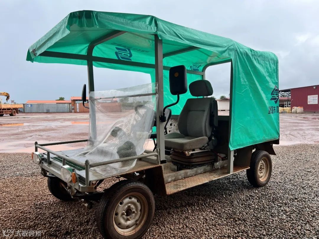 保障部员工自行改装了一辆既可用于货物转运、又可载人的“益丰牌”敞篷电动车。