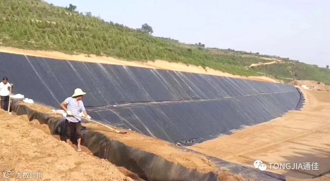 绿化生态环境,保护青山绿水、蓝天白云,土工膜作为一种基础性土工防水材料,有一定的变形量,对底垫层的凹凸缺陷产生的应力传递分散较快,应变能力较强。复合土工膜用土工织物代替颗粒材料作为土工膜保护层,以保护土工膜防渗层不受损坏,降低垫层粒径的级配要求,并能起排水等作用。复合土工膜还有一定的保温作用,减少了土体冻胀对土工膜的破坏,从而减少土体变形;复合土工膜磨擦系数大,比单纯HDPE土工膜多了保护层,具有抗拉伸、撕裂、顶破、穿刺、力学强度高等特点。复合土工膜采用埋入式铺设,能有效防止覆盖层的滑移,具有优异的抗老化性能,大大减少了工程的维护和保养。