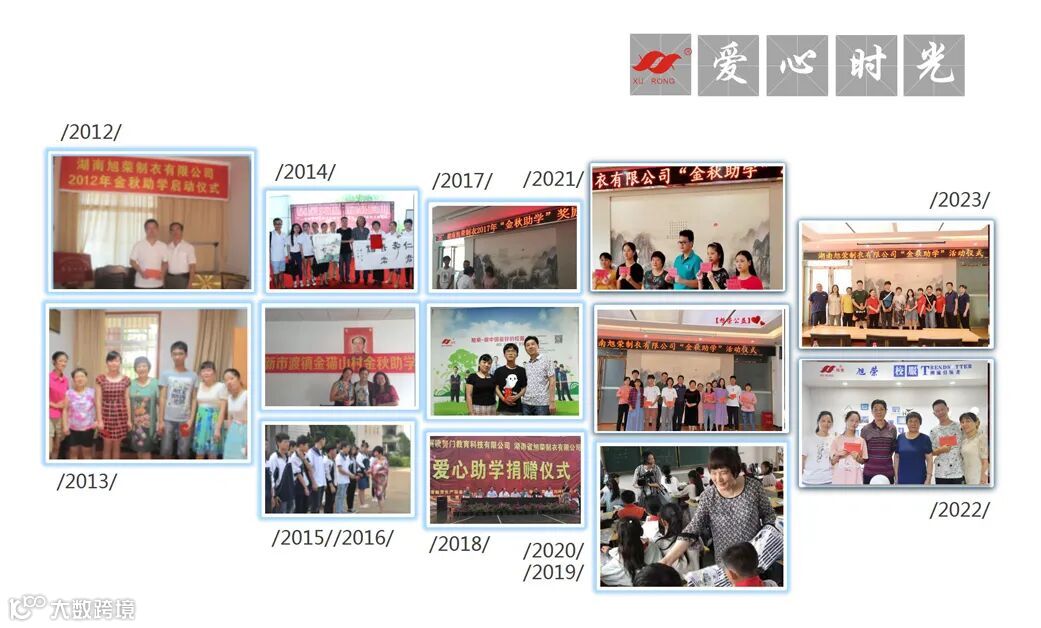 自1997年公司成立之初,旭荣就将“金秋助学”作为一项重点惠民工程。通过捐资助学的方式照亮学子们的求学之路,用实际行动传递爱心和正能量。旭荣始终坚持“致富思源、回报社会”的理念,从未忘记自己的社会责任,并将继续为公益事业添砖加瓦。旭荣——与孩子们一起成长!