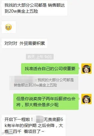 还有,找外贸工作的话,大家不要自己瞎找,一是可能会遇见黑心企业,二来还可能因为遇到那些不好的企业而对外贸行业产生不正确的坏印象,从而错过这个闷声赚大钱的宝藏行业!
