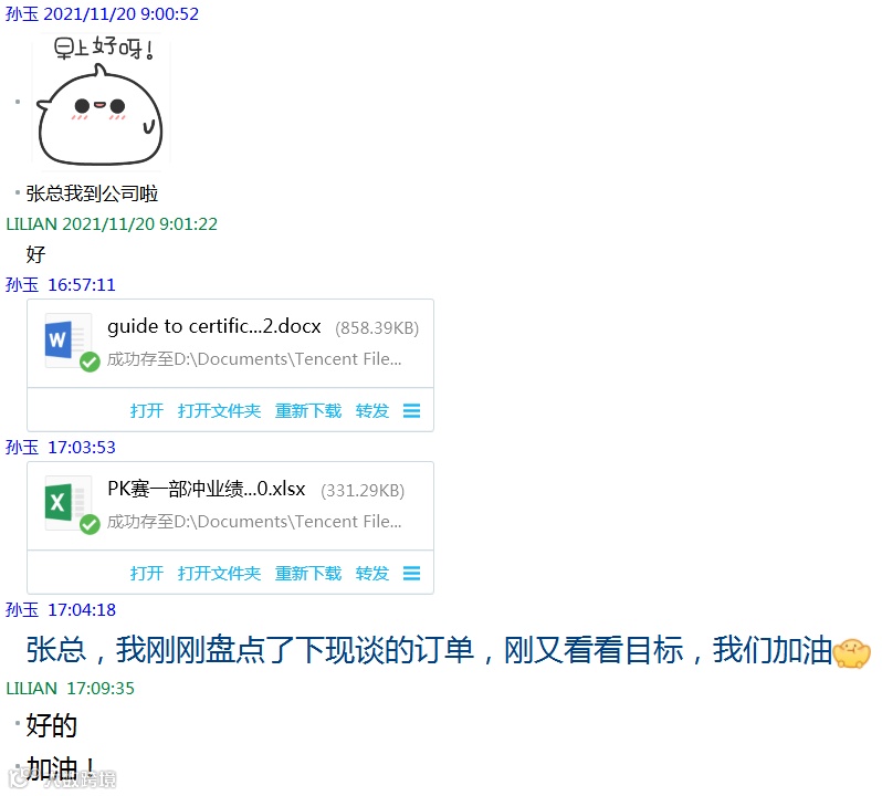这段时间她接触到很多订单,每个订单的产品知识、业务谈判、工作思路和方法,我都给她一一讲解,她学到了很多,为将来的业务也打下了坚实的基础。