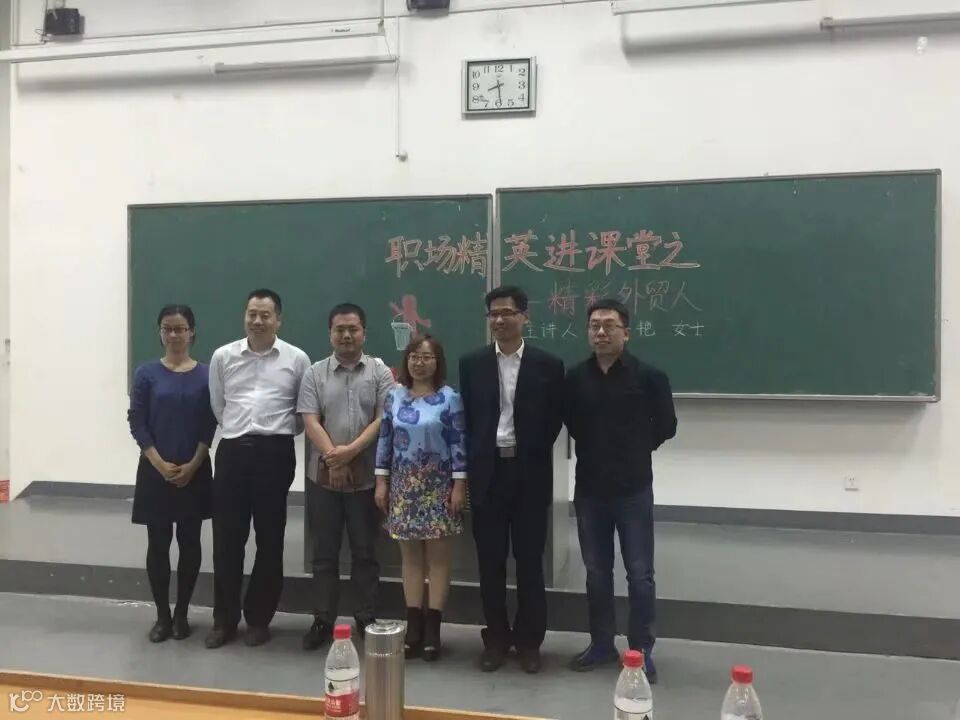 我怀揣对母校的感恩之心,没有推辞,整理头绪做好准备,秀辉书记叫人去召集外语系没有正课的同学们到阶梯教室听我做就业指导, 一会儿教室里坐满了上百名同学,还有几名外语系教师领导和专业课教师,CLAIRE帮我打开PPT,那是我代表河北电商会去河北师范大学外国语学院讲课的一个PPT《精彩外贸人》。