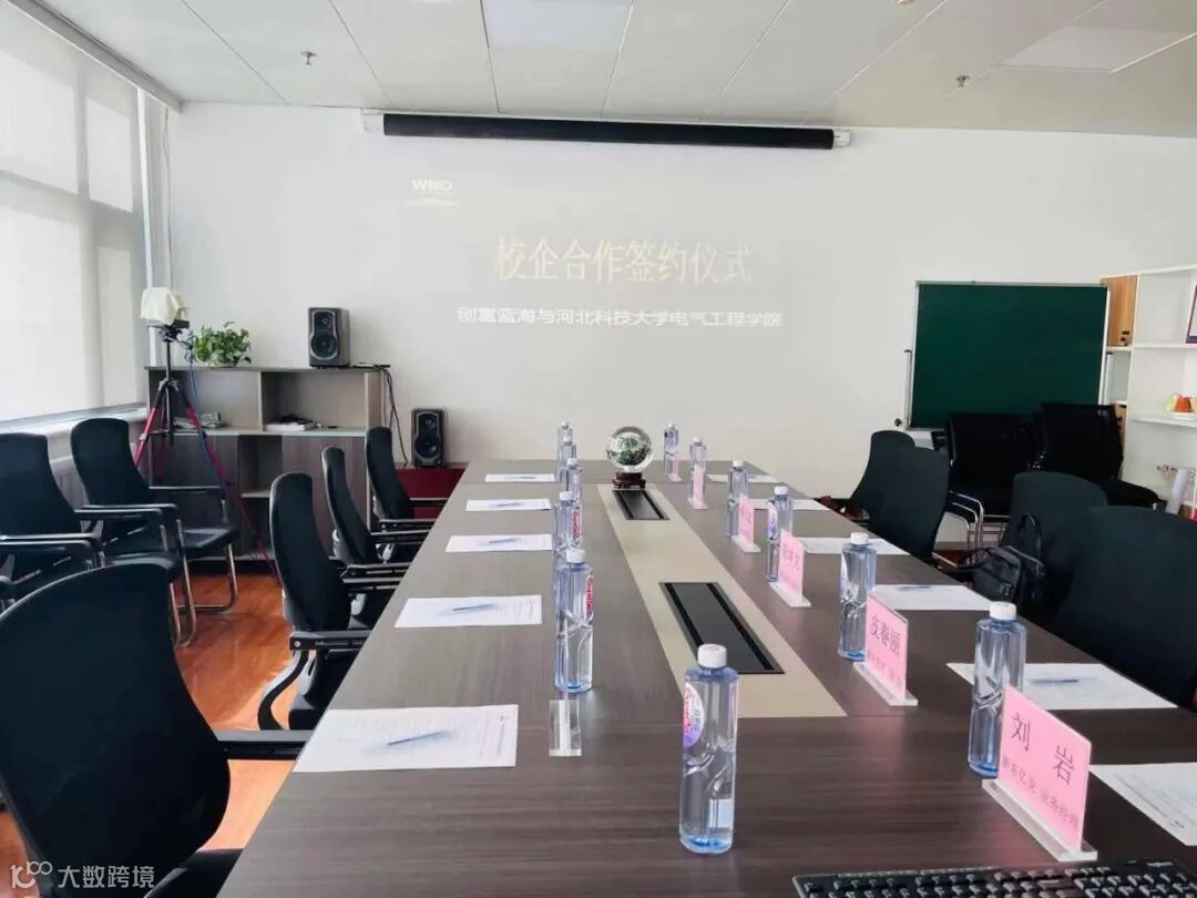 签约仪式,河北科技大学电气工程学院由副书记、副院长吴莎老师领队,在创富蓝海外贸企业联盟股东企业河北新东亿龙贸易有限公司举行。