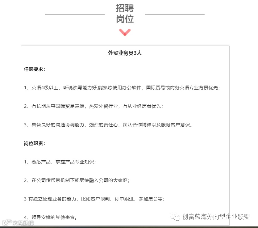2、有长期从事国际贸易意愿,热爱外贸行业,有从业经历者优先;——关键点:个人意愿度与热爱度