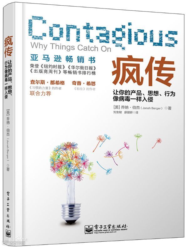 无论你是大公司的管理者,还是努力提高公司知名度的小企业主,无论你是官员或政客,还是非营利性组织的工作者,只要你想传递信息,就请翻翻《疯传:让你的产品、思想、行为像病毒一样入侵》这本书。