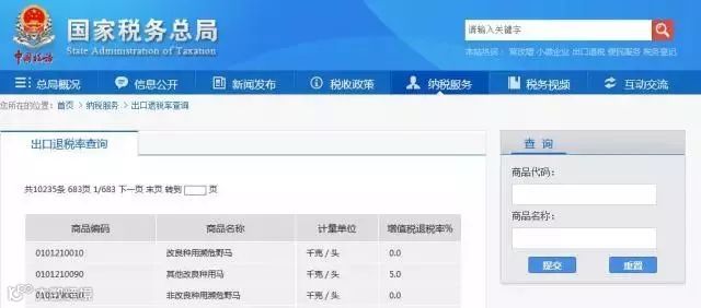 ▐ 出口退税率查询: