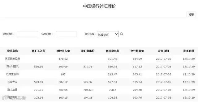 ▐ 每日外汇牌价查询: