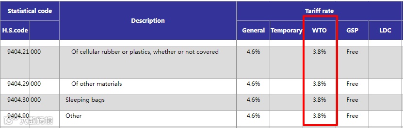 而印度、孟加拉、韩国等市场则属于《亚太贸易协定》,税率同样可以在这个网站查询到。
