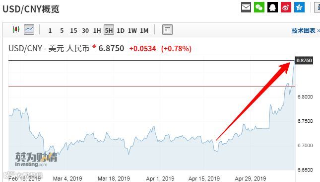 中国金融期货交易所研究院首席经济学家赵庆明认为,在当前两大国经贸磋商遇挫的情况下,人民币汇率会走弱,不排除再次走低至6.97附近,但是不会轻易跌破7的整数关口,不过需要注意的是,从历史经验来看汇率走弱会伴随股市走弱,新兴市场国家容易发生“股汇双杀”行情。(有新兴市场国家客户的朋友们需要注意了!)