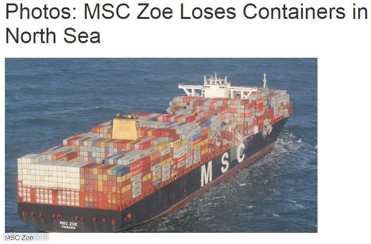 世界最大货轮之一的巴拿马籍货轮MSC Zoe于1月1日晚间在北海遇上恶劣天气,至少270个货柜落海,其中3个货柜含有潜在危险物质。