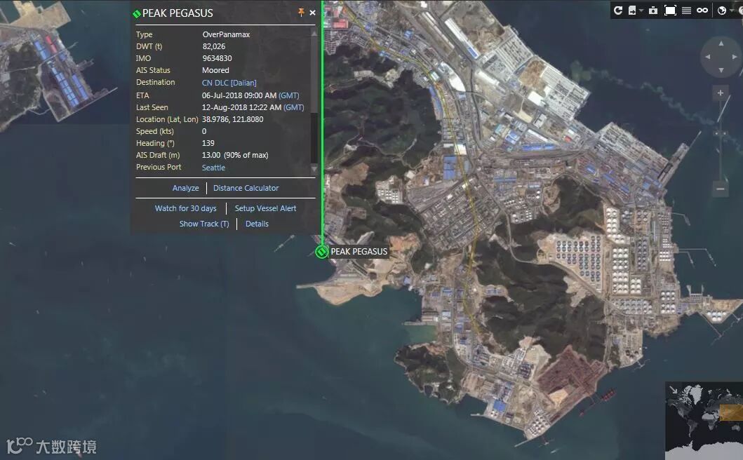 据路透社8月12日最新消息,根据Eikon船舶信息显示,“飞马峰号”大豆船于12日(星期日)凌晨停泊大连的港口。
