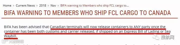 近期加拿大港口出台新规定:如果海运出口整箱的提单是出EBL(Express Bill of Lading)或者SWB (Sea Waybill), 那么一旦集装箱被海关和船公司放行后,即使在没有货主或者加拿大代理的授权下,加拿大码头也将有权将集装箱交给提单上任一货权方!