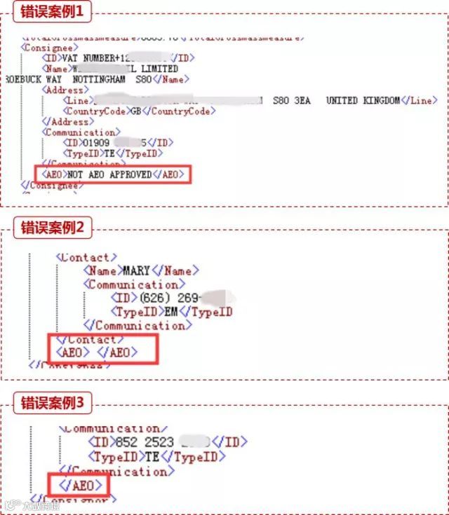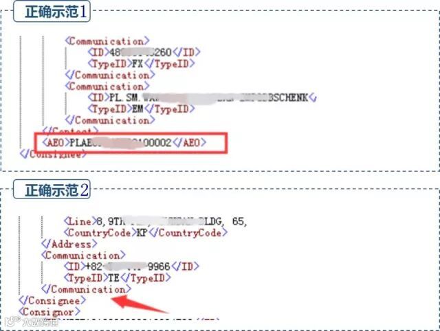 示范说明——AEO企业正确填制规范如正确示范1所示,填写格式为“大写字母”+“数字”;未经AEO认证企业如正确示范2所示,不出现该字段。