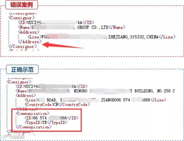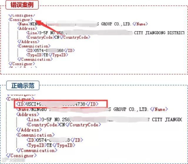 错误示范:必填项未填。系统退单提示:“11157 报文不符合填制规范,海关审核不通过,需要填写发货人代码”、“50004 请填写企业类型代码或国家代码”