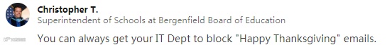 一个极端案例,一位CEO发帖呼吁,别再给他发感恩节贺卡了!在感恩节前,他一个上午收到了147封来自供应商的感恩节贺卡邮件的密集轰炸!