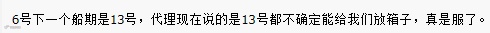 然后没多久新货代的老板说甩柜了,只能走两个,并且不能保证走哪两个,客户考虑再三决定四个柜子全部改期,改到12.4船期。新货代提到此期间海运费会涨价,当时沟通说是尽量帮我们沟通好价格,之后就一直没有消息。