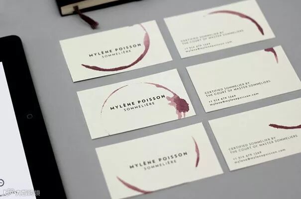 这家公司采用的“视觉冲击”法来吸引客户的眼球。直接将葡萄酒迷人的色调展现在名片上,让人忍不住想要用手指抹一滴放入口中品尝。