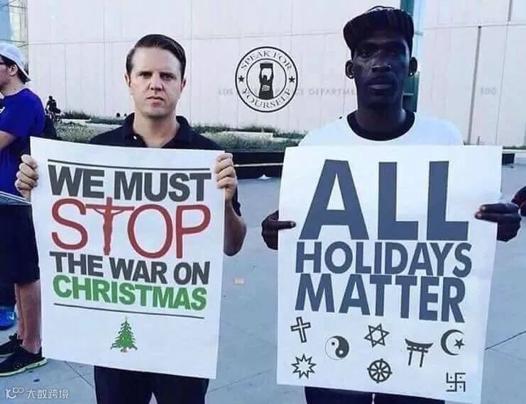 在奥巴马当政期间的8年,“Merry Christmas”甚至成为敏感词。可是这么一搞,基督教徒又不高兴了:怎么滴是看不起基督徒吗,过个圣诞节还不让说了昂?于是国内又为能不能说“圣诞快乐”吵起来了,专门有一个“圣诞之战”(War on Christmas)成为了热点事件。不过轮到川普,他在竞选时就承诺要让“Merry Christmas”解禁,现在大家又开始说“圣诞快乐”了。