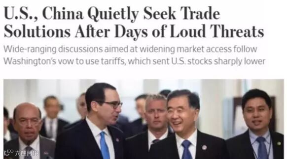 《华尔街日报》也表达了类似的观点,据知情人士透露,在一周的“恶言相向”后,中国正“静悄悄”与美国商量开放中国市场的措施。美国与中国政府已于上周末开始接触谈判,内容涵盖广泛,议题包括金融服务与制造业等。美方负责谈判的是财长姆钦、贸易代表莱特希泽,中方谈判代表则是新上任的副总理刘鹤。