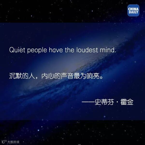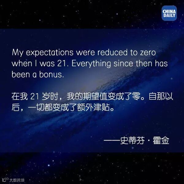 尽管早已全身瘫痪,只能依赖语音合成器与人对话,但他的心却一直笼罩宇宙星空。他曾说:身体虽然残障了,不要在精神上残障。