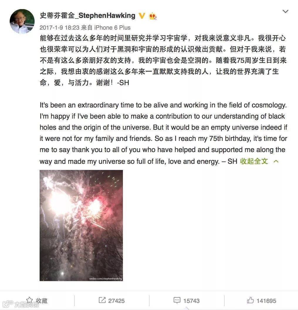 霍金的官方新浪微博