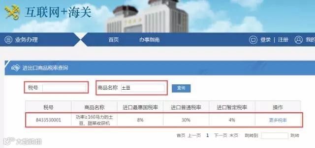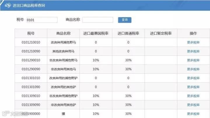 在“税率查询”模块的“税号”栏输入需要查询的税号或者是商品名称,点击“查询”,就可以查询到相应地进口最惠国税率、进口普通税率、进口暂定税率等。