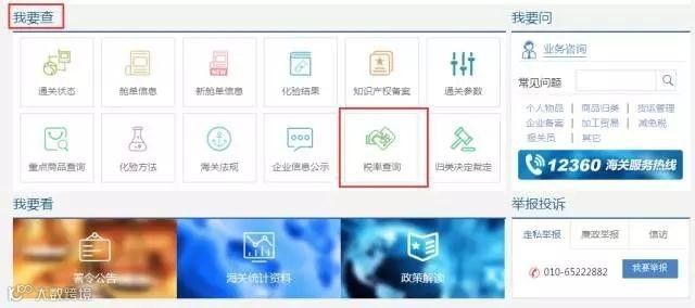 首先进入“互联网+海关”(网址:http://online.customs.gov.cn/)的“我要查”界面,点击“税率查询”模块。