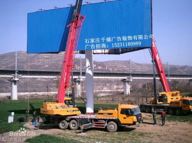 石家庄千禧广告装饰有限公司是国内的一家专业施工制作高速媒体广告、单立柱广告塔、擎天柱高炮的实体型广告公司。总部位于河北省石家庄,创建于2000年,一直致力于高速单立柱广告塔的设计研发、施工制作。目前拥有自建6000平米加工厂房,专业安装团队12班,公司包括国内贸易部和国外贸易部。立足国内,服务全球。