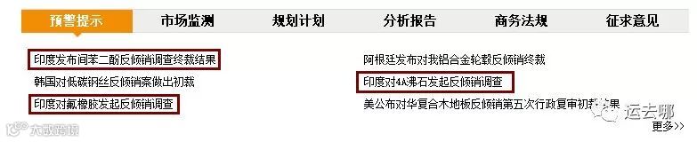 ▼商务部官网预警提示栏