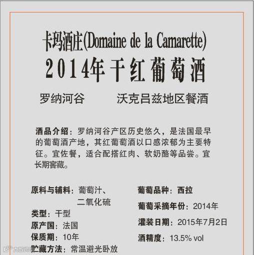 2014法国卡玛酒庄干红葡萄酒