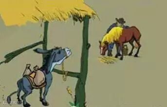 在年终大会上,驴又一次没有被评上“劳模”。驴委屈地向领导秘书狐狸申冤:“为什么我最勤劳、最辛苦,却年年评不上先进?”狐狸笑着说:“是啊,你拉磨的本领无人能及,可是,我们明年要与时俱进,准备改用机器拉磨了。”
