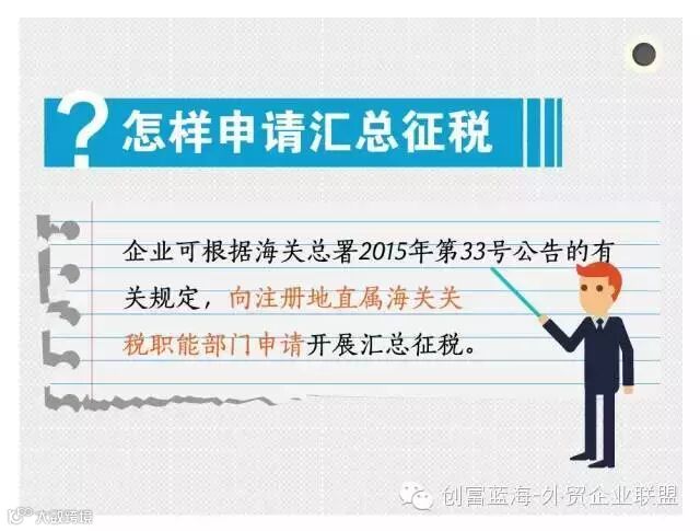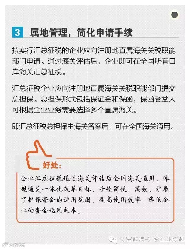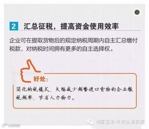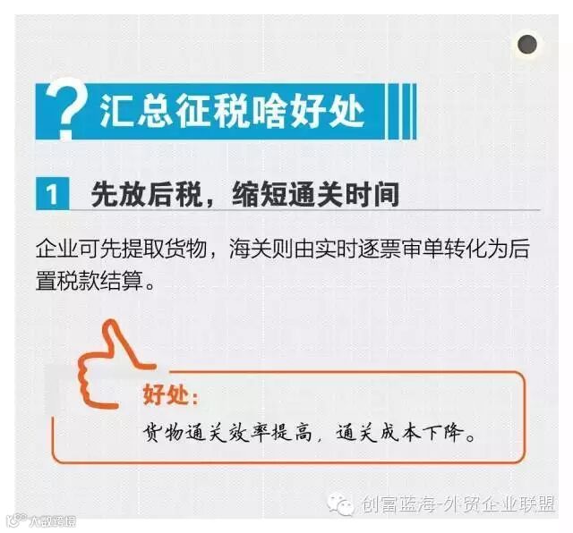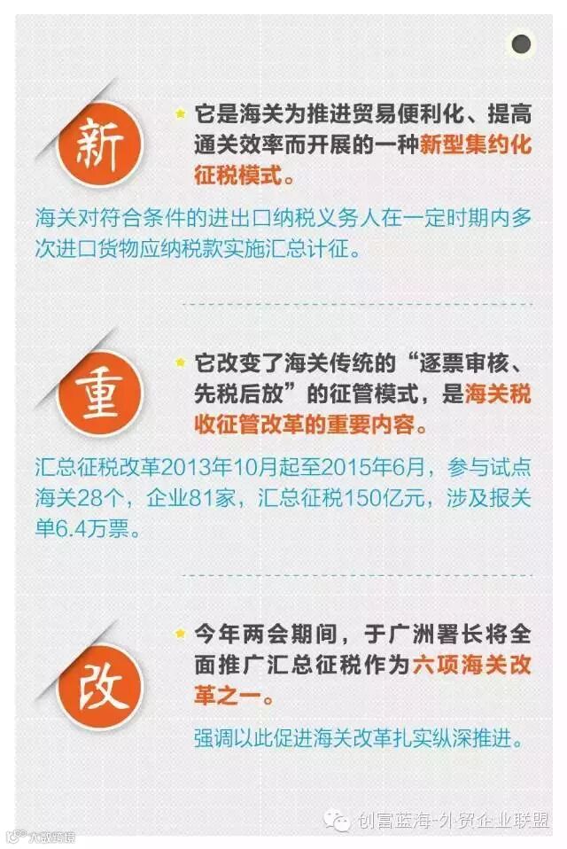 导读:在前期试点的基础上,海关总署决定自2015年7月27日起向全国推广汇总征税。这样普大喜奔的利好消息,你一定需要了解,啥叫“汇总征税”,都有哪些好处呢?要如何才能申请到这一模式?以下逐一解答: