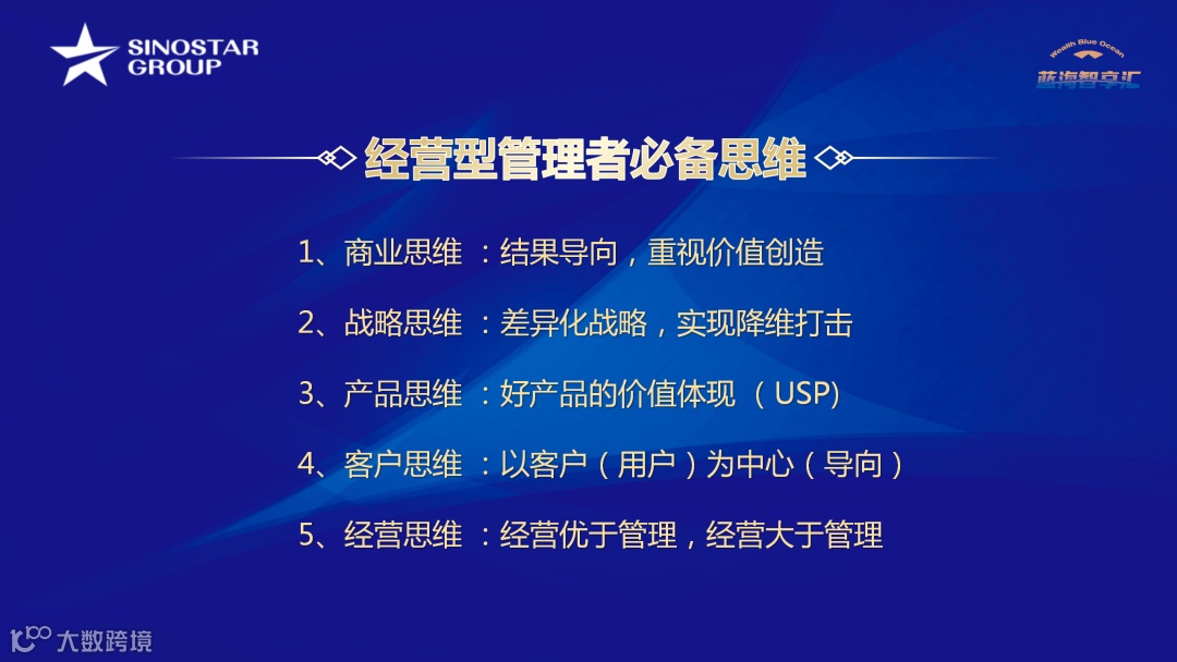 今天,我们截取了精品课程中的“外贸企业经营型管理者的必备思维 ”部分片段,与各位外贸企业家分享。