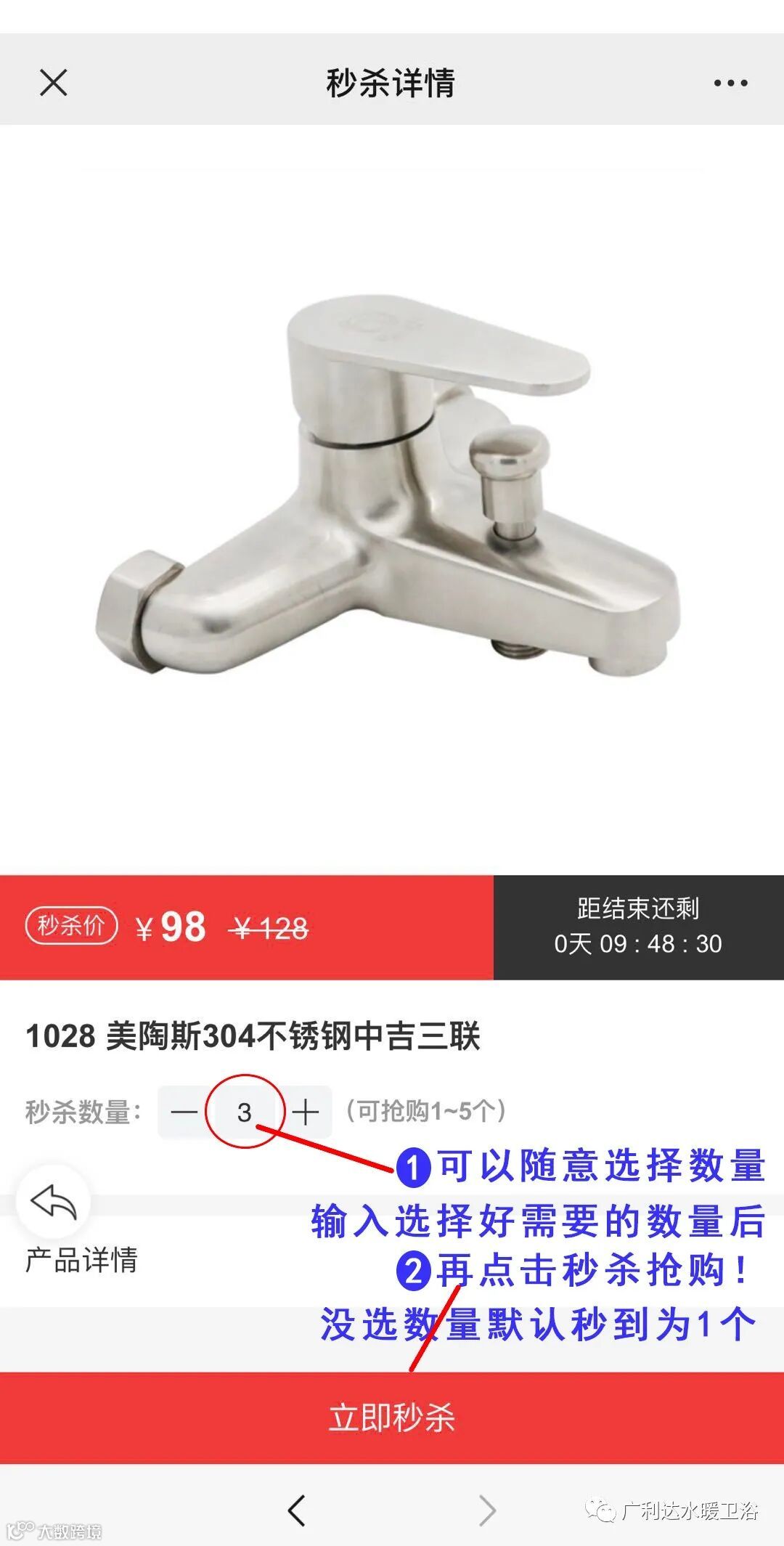 例如显示可抢购1~5个,则可以自己选择之间的数量填入后再点击“立即秒杀”