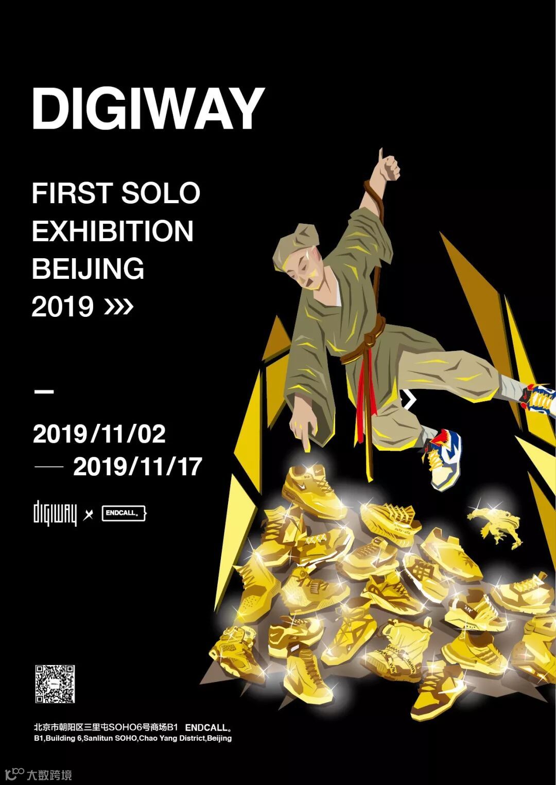 Digiway个人艺术展地址:北京市朝阳区三里屯SOHO6号商场B1-602 ENDCALL。