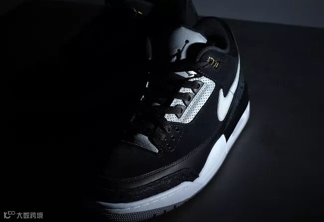 此前我们曾多次报道的,Air Jordan 3 Tinker “Black Cement” 实物再度曝光。这双鞋以黑、灰两色皮革,搭配经典爆裂纹,呈现出经典的黑水泥配色。鞋舌、鞋带孔与 Swoosh Logo,均采用亮眼的 3M 反光材质设计。