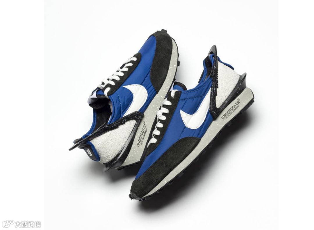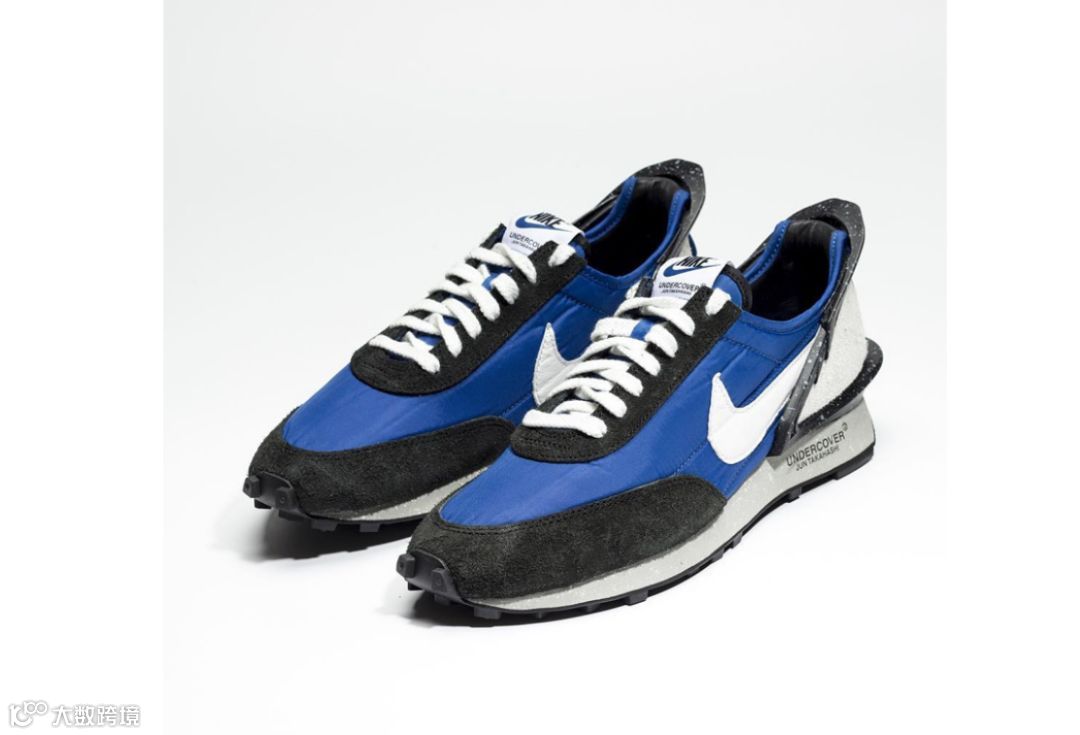 UNDERCOVER x Nike Daybreak 联名蓝黑色调的完整细节近赏,全鞋以 Daybreak 鞋型为题,于鞋跟处加入突出结构,并以尼龍、皮革和麂皮等不同质料打造鞋面,中底处的泼墨设计亦增添细节,鞋舌、鞋垫、中底和鞋跟处则有品牌字样象征联名身份。此款预计在今夏登场,售价 $160 美元。