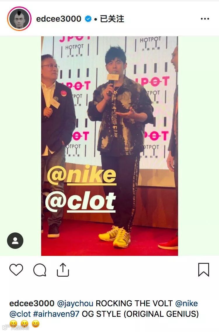 而作为「巨星 Sneakerhead」的周杰伦周董,也在近日上脚了荧光配色的 CLOT x Nike Air Haven 97。