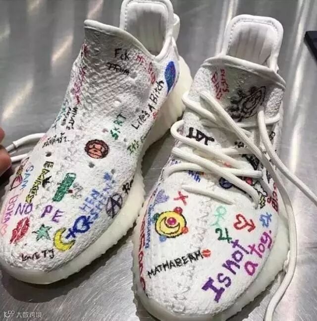 涂鸦是非常普遍的做法,可以用绘画笔直接画画或全身涂鸦,采用不同元素,让鞋身变得饱满起来。只是风险略高,一不小心画错,刚买的鞋就被玩坏了。