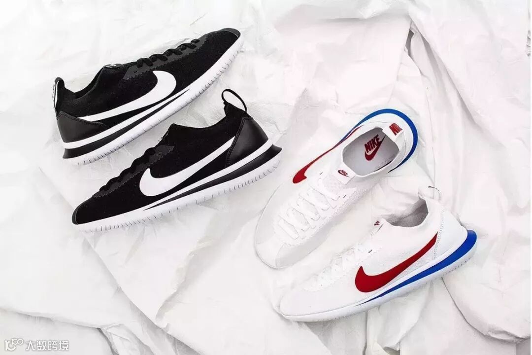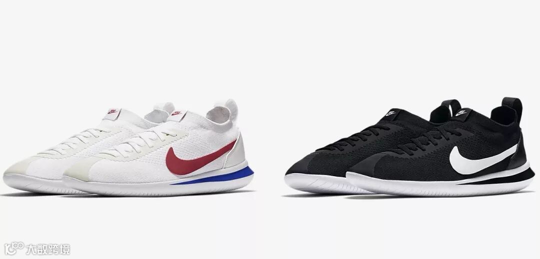 分别以红白蓝及黑白配色示人,在保持 Cortez 外形轮廓的同时,采用 Flyknit 编织材质打造袜套鞋身。