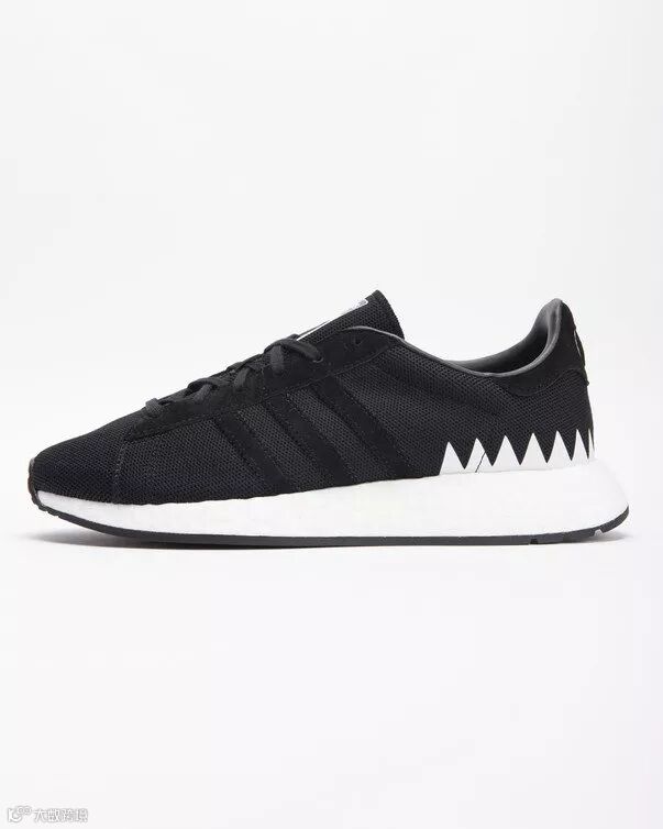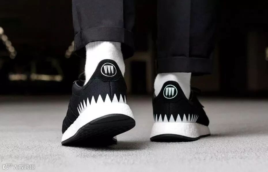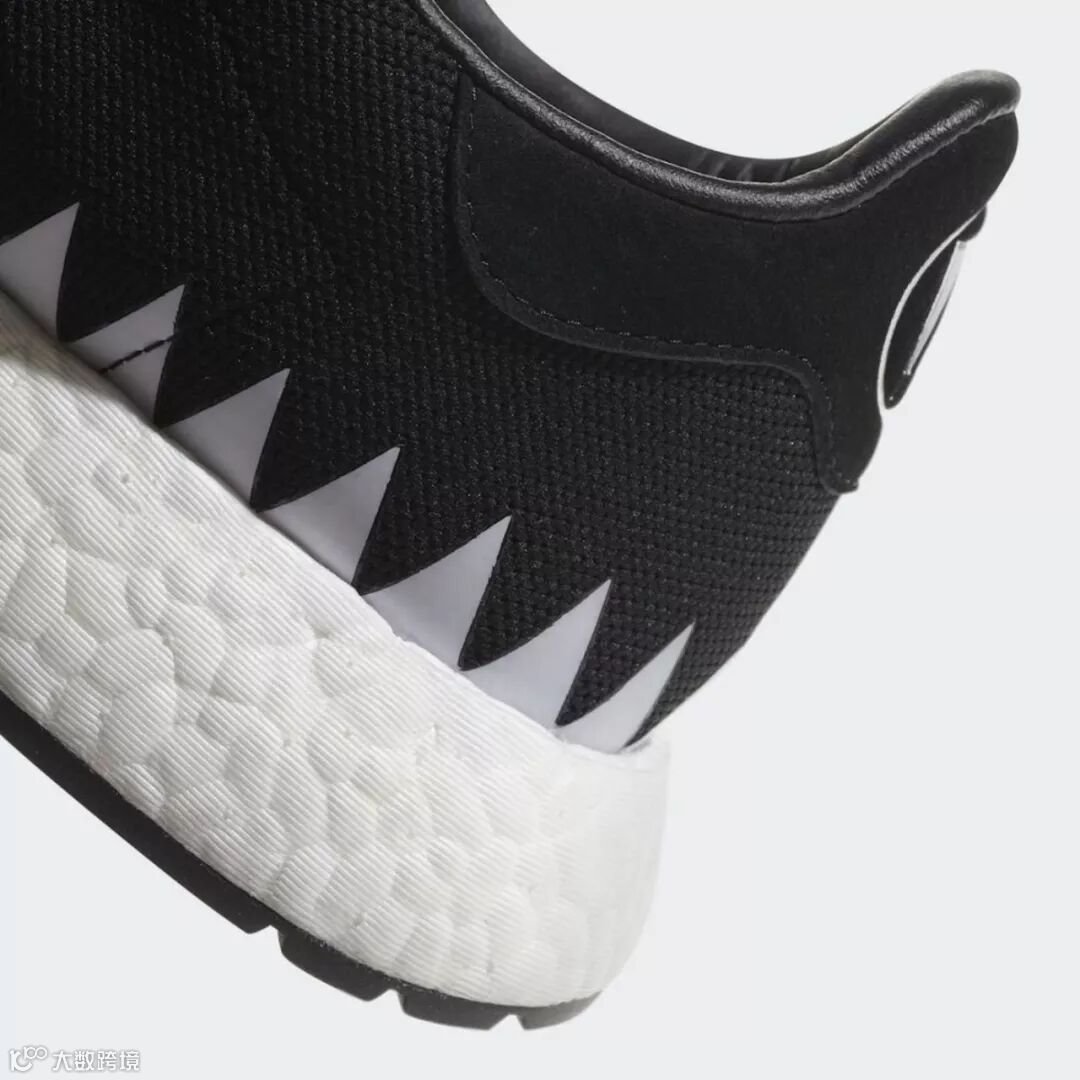 鞋舌标和鞋垫面的 Adidas x Neighborhood 字样,增添了联名标识性,后鞋跟饰片的日本家纹式印花与鞋跟的热塑性聚氨酯橡胶(TPU)锯齿形饰片,Boost 大底搭载橡胶外底机,品质上乘。