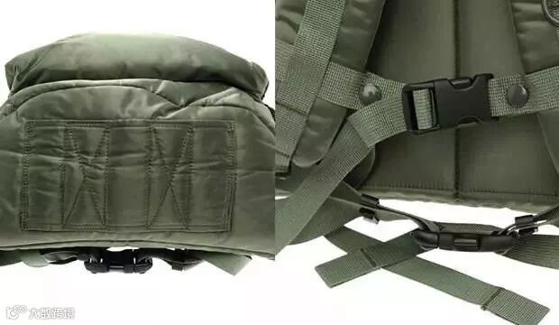 ▲ 在细节上继承了军用风格的特点,里衬采用了警示橙色,与外层的亮面军绿色尼龙材质很是搭调。底部设置了防磨贴片,侧边有可以固定包中物品的卡扣。腰部设置了绑带,可以平衡背负时肩部的受力。 ( image: Google )